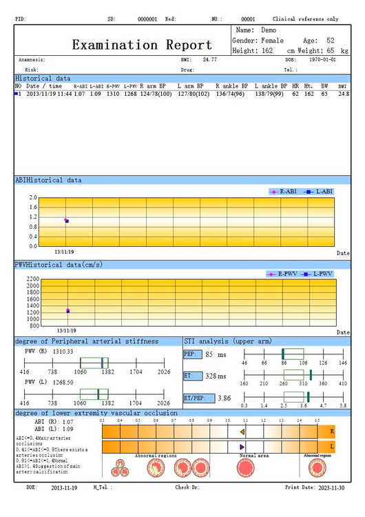 ABI نسبت فشار سیستولیک مچ پا به بازو است. با توجه به این مطالعه، می تواند وضعیت شریان اندام تحتانی مانند تنگی و انسداد را تخمین بزند. ABl برای تشخیص اسکلروز انسدادی شریانی و مشاهده بعد از عمل اهمیت زیادی دارد.