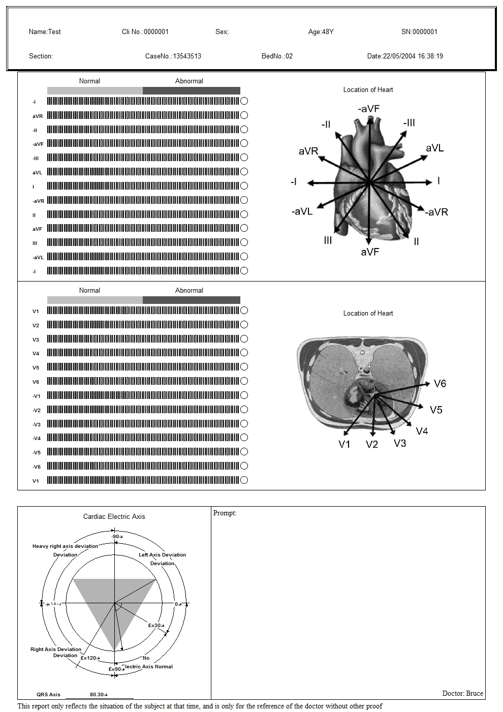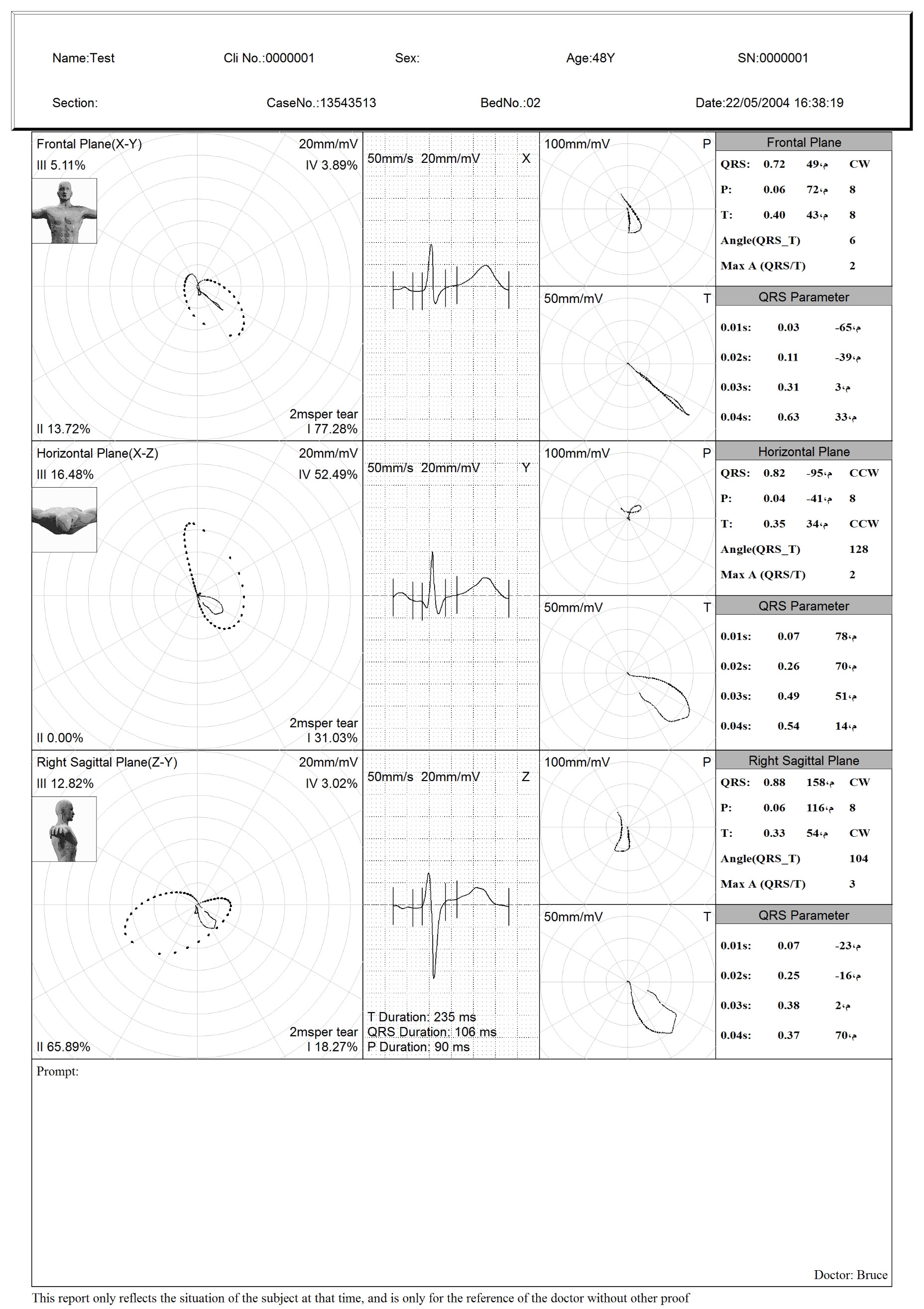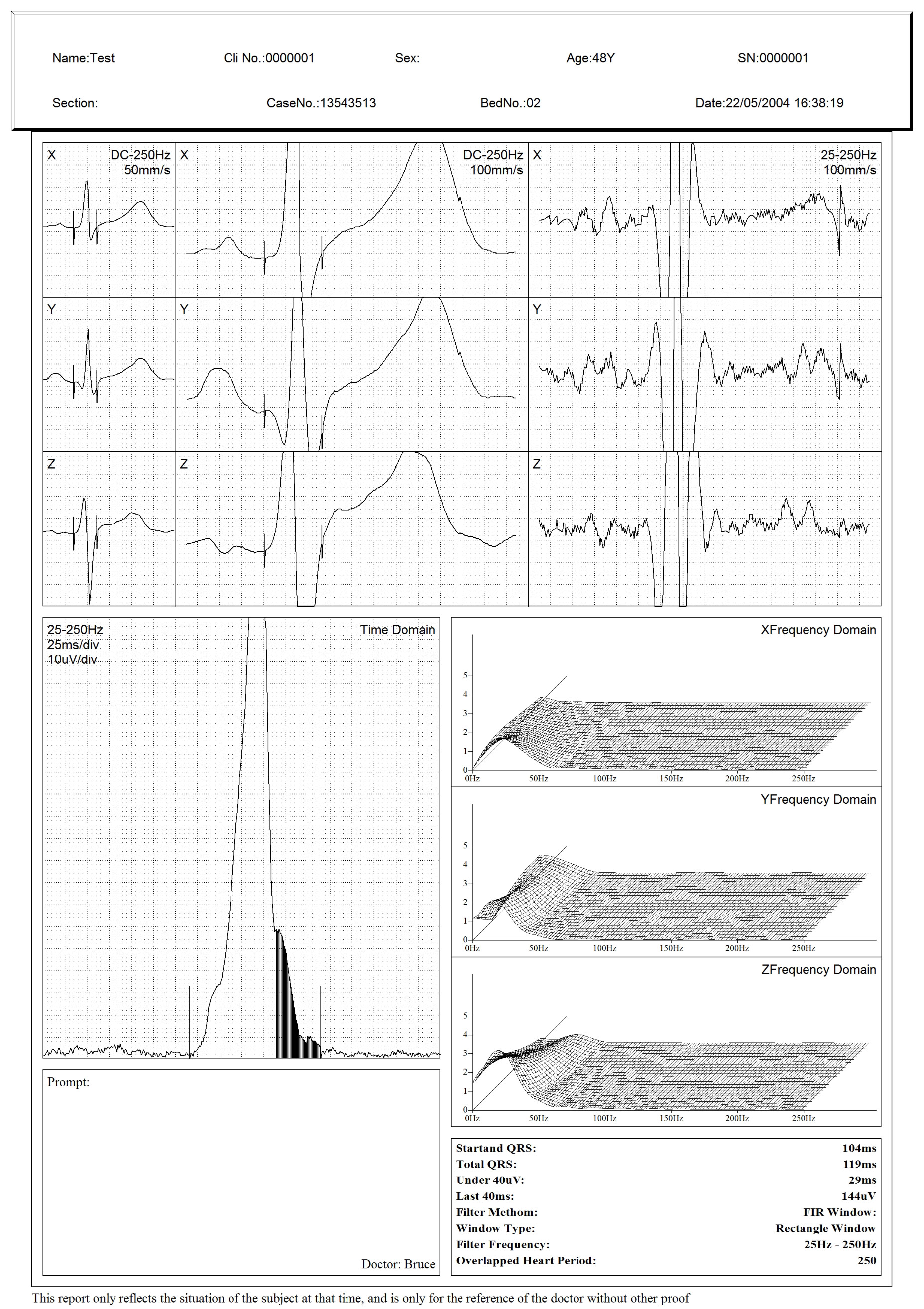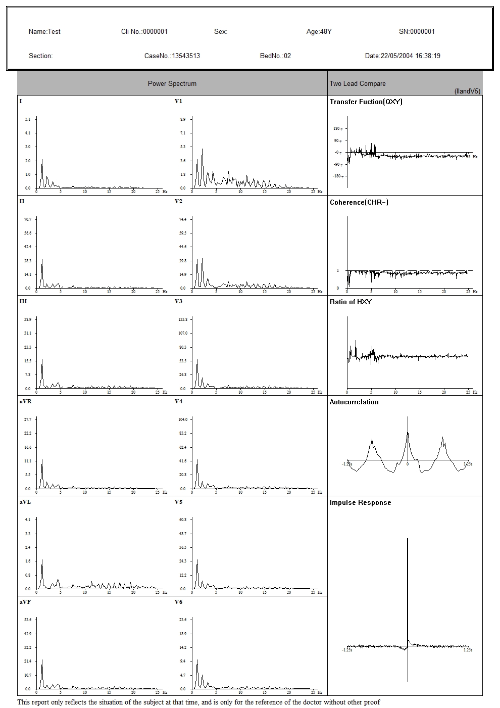 تشخیص و کاربرد بالینی عملکرد تجزیه و تحلیل چندگانه، از جمله: ECG معمولی 12 لید، کاردیوگرام فرکانس (FCG)، ECG فرکانس بالا، تجزیه و تحلیل پراکندگی داخلی QT، تجزیه و تحلیل تغییرپذیری ضربان قلب (HRV)، تجزیه و تحلیل ایسکمی میوکارد (STLE)، تجزیه و تحلیل تلاطم ضربان قلب (HRT)، تجزیه و تحلیل ECG ضربان، وکتور کاردیوگرام (VCG)، زمان وکتور کاردیوگرام (TVCG) و SAECG و غیره