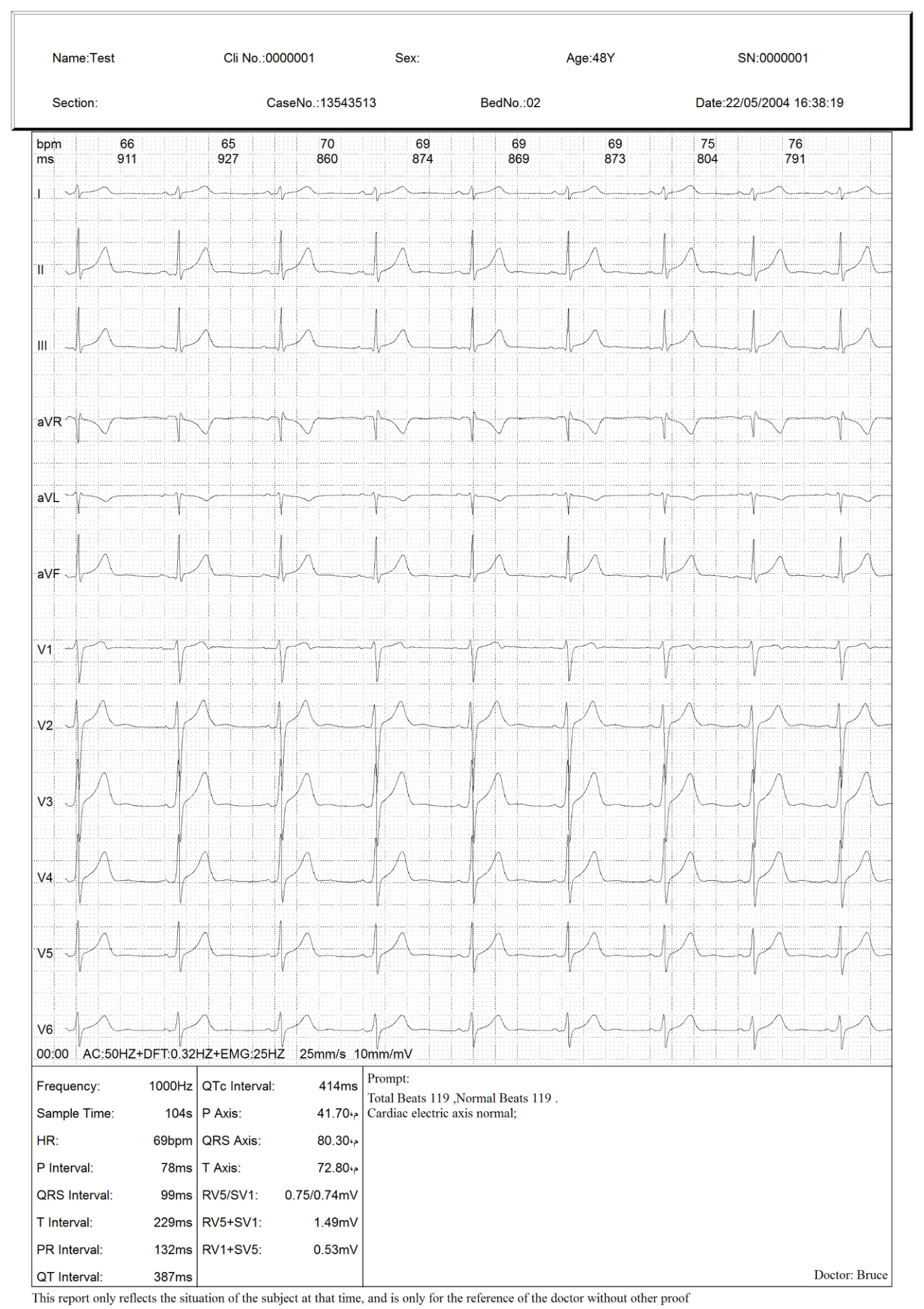 • High sampling frequency (1000 Hz) ensures correct ECG wave- form without distortion. High resolution in display and printout guarantees the details of ECG waveform.